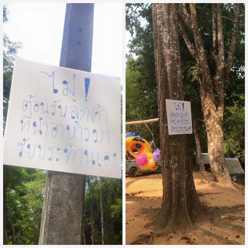 ป้ายไม่ต้อนรับลูกค้าที่นำอาหารมารับประทานเอง ที่อ่างเก็บน้ำเขาระกำ จ.ตราด นักท่องเที่ยวหลายคน ถึงกับงง เมื่อเจอป้ายนี้ และไม่เห็นด้วยการติดตั้งป้าย