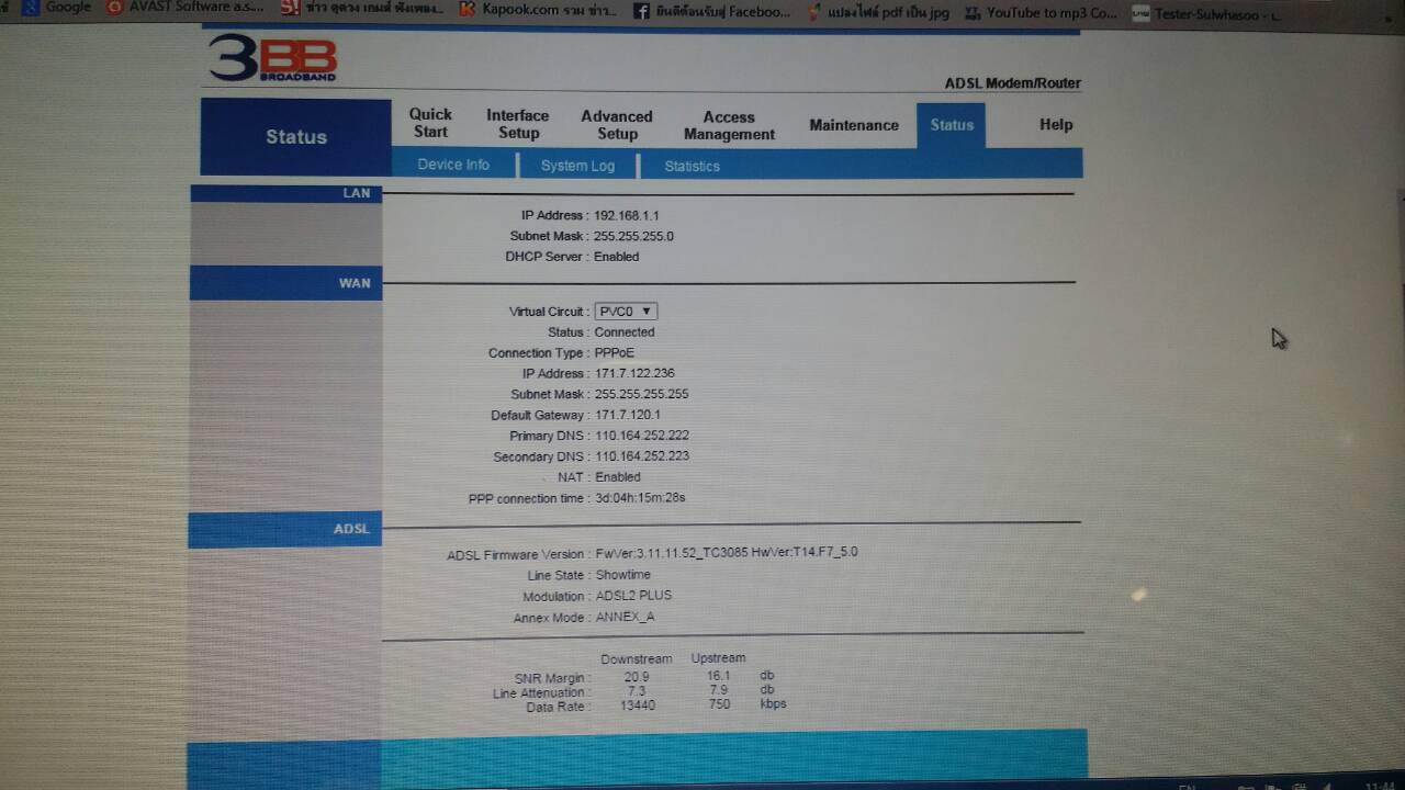 ลองเสริซในนี้ดู มีแนะนำให้เข้าไปดู status ที่ 192.168.1.1 แต่เราดูค่าที่ได้ไม่เป็นอ่ะค่ะ