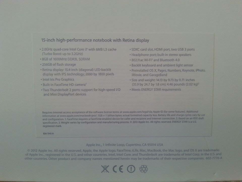ขาย MacBook Pro จอเรตินา15นิ้ว คีย์บอร์ดUK เครื่องปี2013 2.0GHz 256GB