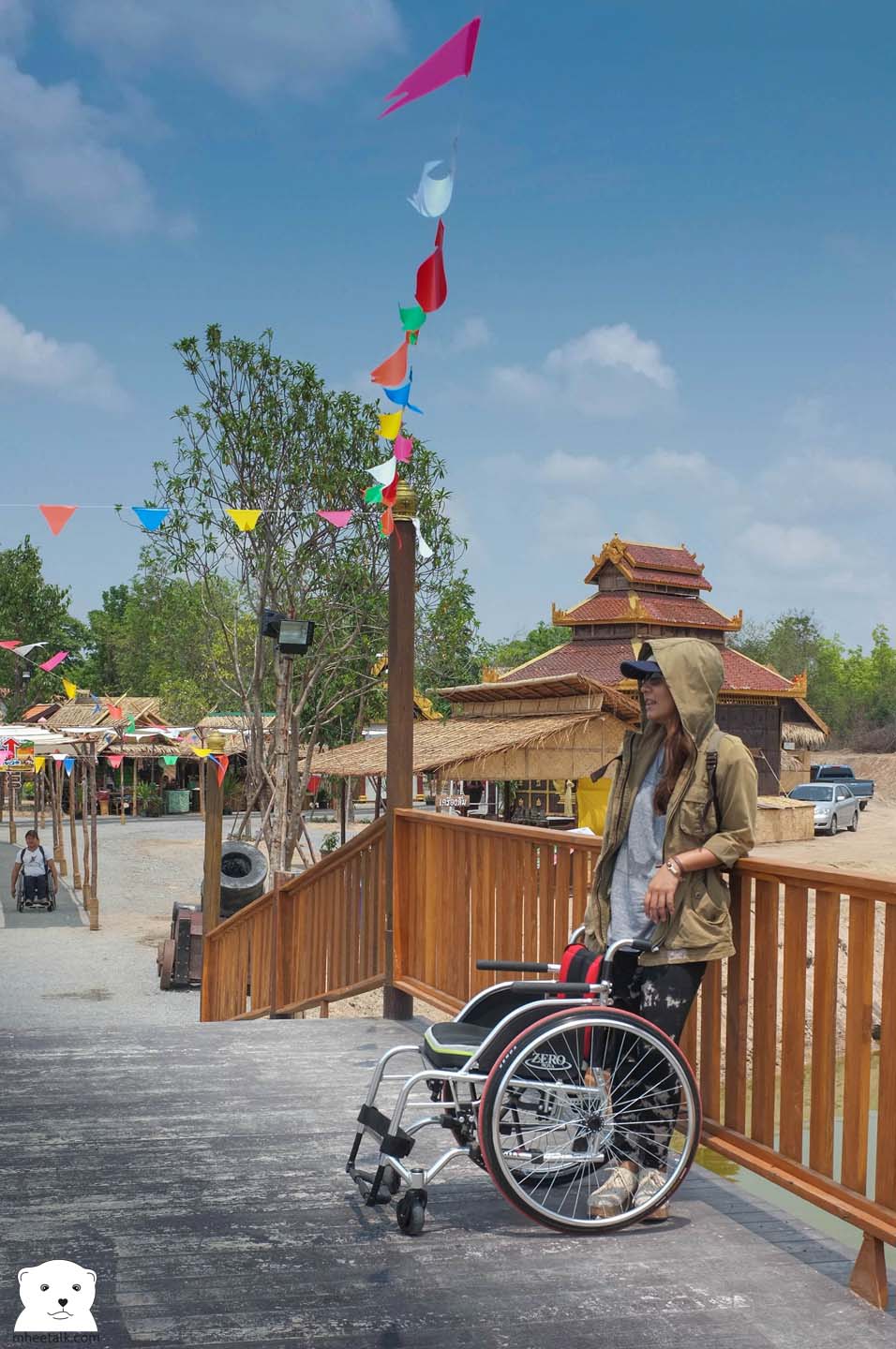 ออกเดินทางเช้าตรู่ในวันหยุด ขับรถชิลๆ ไปแวะชมโรงถ่ายตำนานสมเด็จพระนเรศวรกันก่อน ที่นี่พยายามมีทางลาดให้ใช้พอสมควร แต่ในส่วนของฉากต่างๆ และรถที่พาเราเขาไปชมค่อนข้างขึ้นลงไม่สะดวกนัก ไม่อยากบอกว่าวีลแชร์ไม่ต้องมา แค่อยากบอกว่าถ้ามาแล้วต้องทำใจหน่อย แต่อย่างน้อย ทหาร(เจ้าหน้าที่)ที่ดูแลพื้นที่อยู่ก็พยายามอำนวยความสะดวกเต็มที่ ทั้งช่วยยก เข็น ให้ใกล้ชิดได้มากที่สุด