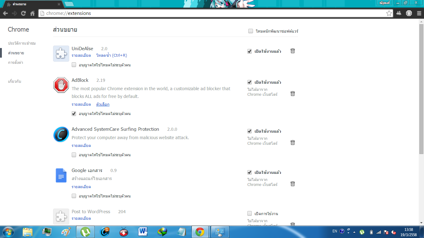 ผมเวลาเปิดโครมทีไรผมต้องลบส่วนขยายของทุกทีครับ พอปิดเครื่องแล้วเปิดใหม่มันก็โผล่ขึ้นมาเหมือนเดิมครับ