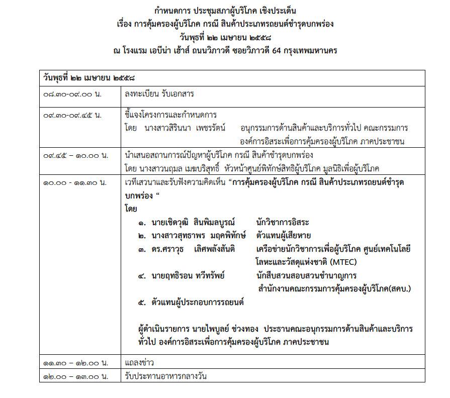 เพื่อร่วมรับฟังและหาแนวทางที่เหมาะสมและยุติธรรมสำหรับผู้บริโภคไทย และออกเป็นมาตรการต่างๆในอนาคต