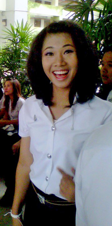 บางทีก็คิดนะว่า โหยอยากประกวดบนเวทีกะเขาบ้าง เห๊อ บางทีก็เพ้อ แต่ก็นะ หาแฟนยังยากเลย แต่ตอนนั้นก็มีคนปลื้มคะ เพราะมีของดี 555 เด็กกิจกรรม ลึกๆๆ แล้วเราก็อยากมั่นใจหลายๆ อย่าง เราไม่เคยรู้จักการแต่งหน้า เคยคิดอยากสวย แต่ก็ไม่มีตังค์ไรเยอะแยะ แต่พอเข้า ปี 1 แค่นั้นแหละ คิดๆๆ ในใจ ทำไมเพื่อนสวย เราพยายามเสาะแสวงหาแนวทางทุกอย่าง ทั้งการใช้ครีม การใช้สมุนไพรที่หาได้ ดูแลตัวเองมากขึ้น จนสุดท้าย ก็ขึ้นมาได้นึดนึง