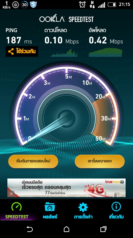 ผมใช้เน็ตเครือข่าย 3G truemove H ซึ่งความเร็วช้ามาก ช้าทุกวัน ช้า เช้า เที่ยง เย็น กลางคืน แถวที่ผมอาศัยอยู่เป็น ซอย เป็น ชุมชน ที่มีคนอาศัยอยู่จำนวนมาก จึงอยากให้ผู้ที่มีส่วนเกี่ยวข้อง ช่วยมาเพิ่มเสาสัญญาน หรือ ทำอย่างไรก็ได้ให้ความเร็วเน็ตมันดีกว่านี้ครับ ถ้าช้าเหมือนเต่าอย่างนี้ต่อไป ผมคิดว่า ทั้งผม ทั้งเพื่อน ทั้งคนอื่นๆ ที่ใช้เครือข่ายนี้ได้ย้ายหนีไปใช้เครือข่ายอื่นแน่ๆครับ หวังว่าคงได้รับความช่วยเหลือ ขอบคุณครับ