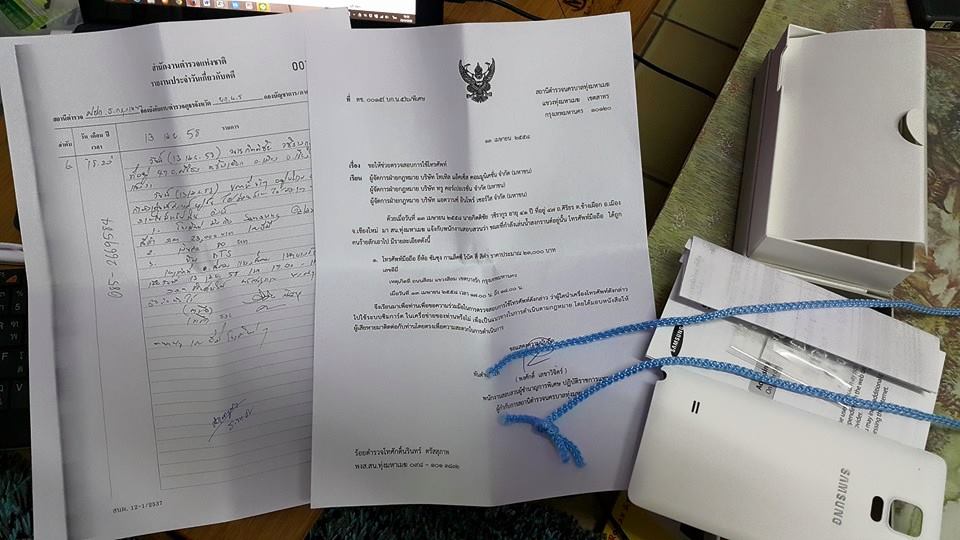 4. แจ้งความที่สถานีตำรวจ (คิดว่าแป๊บๆ อาจจะ 2-3 ชั่วโมงได้ แล้วแต่คิวซึ่งคิวของหายมักจะยาว ถ้าเป็นเสียค่าปรับล่ะเร็วเชียว บางที่จะต้องใช้บัตรประชาชน แต่ถ้าเราบอกว่าเครื่องพึ่งหายเลยรีบมา ก็แล้วแต่เจ้าหน้าที่จะเห็นใจ) จะได้เอกสารมาสองฉบับ ฉบับซ้าย(จากรูป) คือใบแจ้งความเอาไว้ไปขอซิมใหม่เบอร์เดิม ใบถัดมาต้องเขียนเลขอีมี่(นี่แหละจะต้องใช้เลขอีมี่ไง) แล้วเอาไปยื่นที่ศูนย์ใหญ่ของค่ายมือถือที่เราใช้บริการ ศูนย์เล็กไม่รับนะคับ
