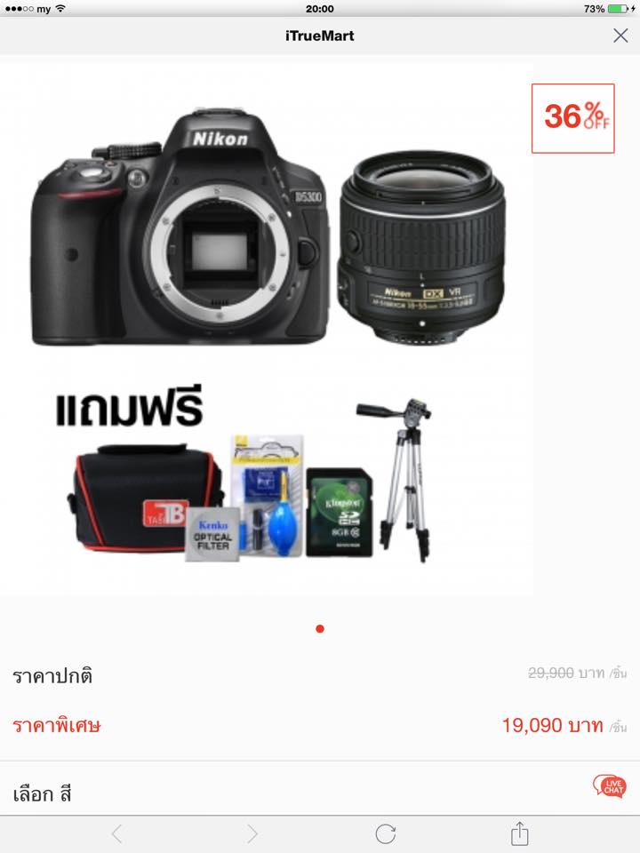 เห็มจาก LINE shop ครับ itrue mart เขาขาย NIKON D 5300 ลด 36 % จาก จาก 29,900 เหลือ 19,090 แถมผ่อน 0 % ได้อีก 10 เดือน