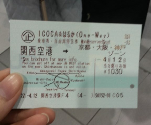 - Icoca&HARUKA : 3030 Yen โดยซื้อแบบนั่ง Haruka เที่ยวเดียวเพื่อไปเกียวโตค่ะ
