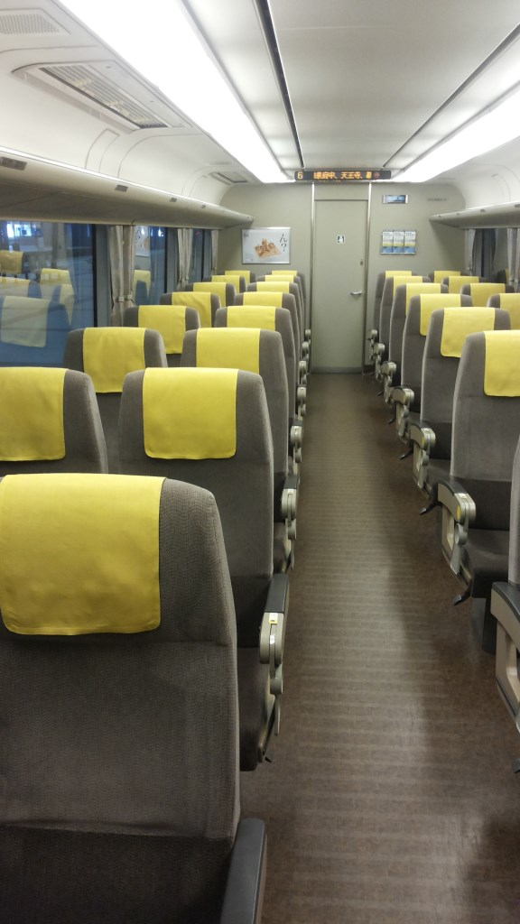 แล้วเราก็ขึ้นเก็บกระเป๋าตรงทางขึ้นแล้วก็ไปนั่งเก๋ๆ จองที่ในตู้รถสำหรับคนที่ไม่ได้จองที่นั่งมาอย่างสวยๆ โดยในรถไฟจะมีการประกาศและตัววิ่งเป็นภาษาอังกฤษทุกๆ สถานีค่ะ(แต่พนักงานตรวจตั๋วเขาไม่พูดภาษาอังกฤษกับเรานะเออ พ่นญี่ปุ่นมาให้เอ๋อกับไปเลยทีเดียว)