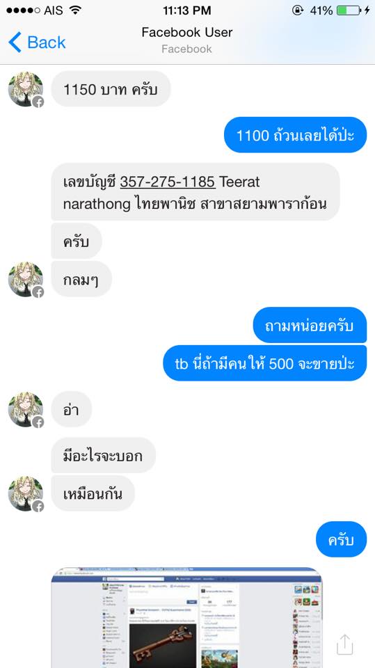 ปล3.เงินที่ผมโดงโกงไปคือ 1300 บาท ถึงมันอาจจะน้อย (รึเปล่า) แต่ถ้ามันได้โกงคนอื่นต่อไปเรื่อยๆมันก็จะมากขึ้นๆครับ
