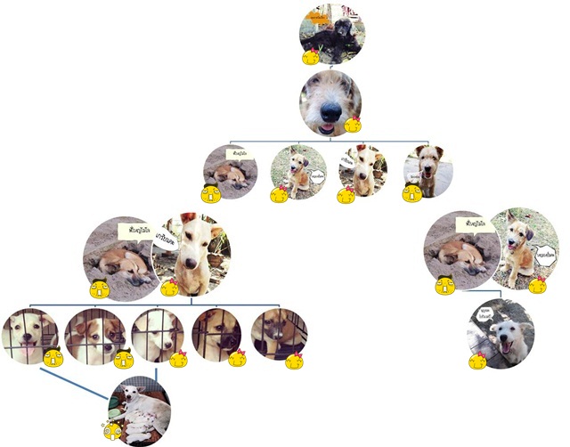 นี่คือแผนภาพต้นไม้ของบรรดาน้องหมาที่บ้านของเราเอง