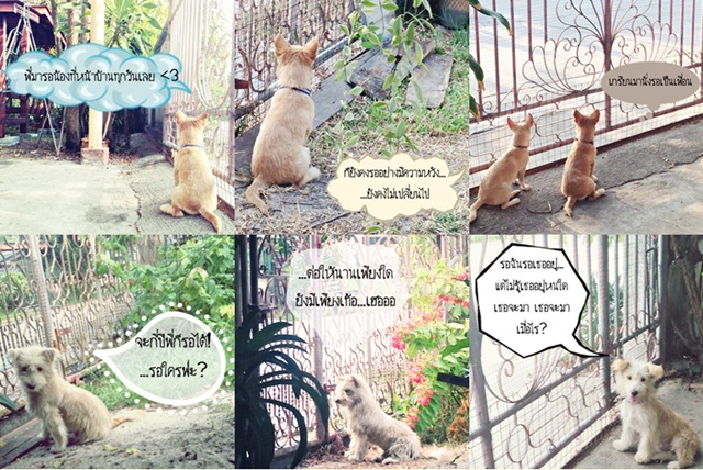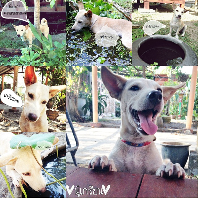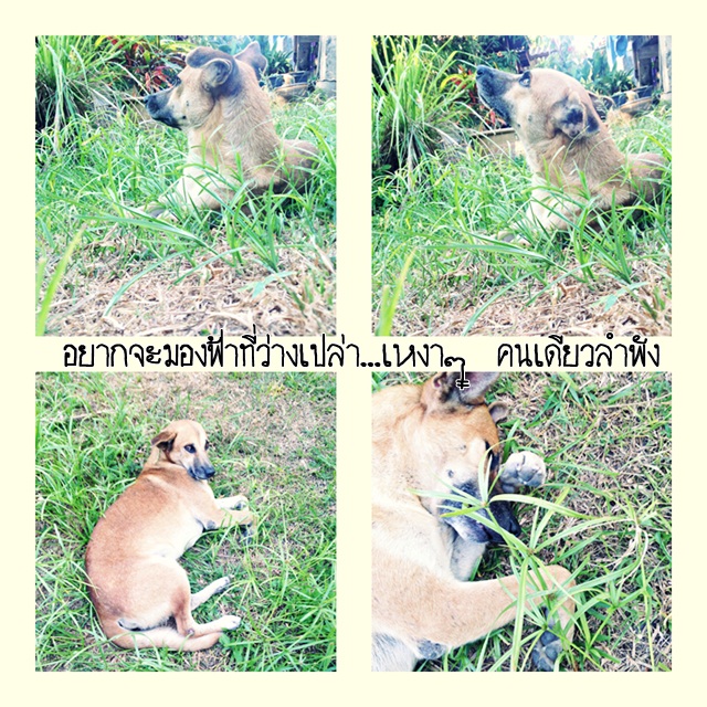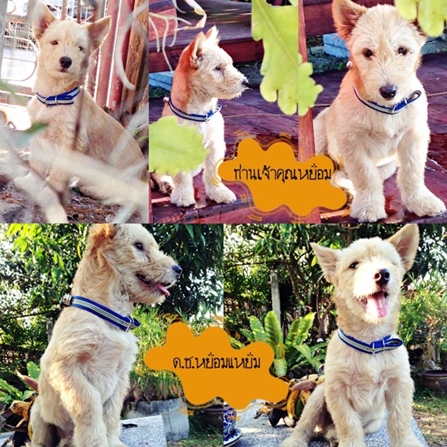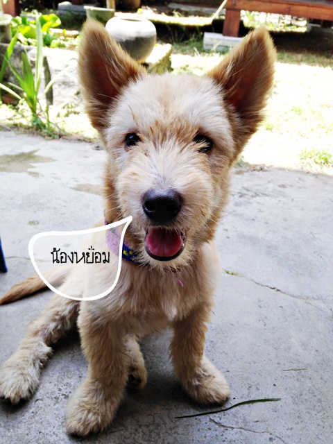 ตัวนี้ชื่อว่าหย๋อมแหย๋ม เรามีความรู้สึกว่าหย๋อมแหย๋มมีความรู้สึกนึกคิดมากกว่าหมาทั่วไป เวลามองหน้าแล้วรู้สึกว่าเค้ากำลังคิดอะไรอยู่