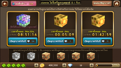 ลบ เพชร ไม่ยัดผง 7.30 ชม ครั้งแรกที่เปิดได้ 300 เพชร ถ้ายัดผง 09.00 , 09.50 ใช้เพชรเปิดทันที ทำไมได้แต่ของไม่ดีครับ