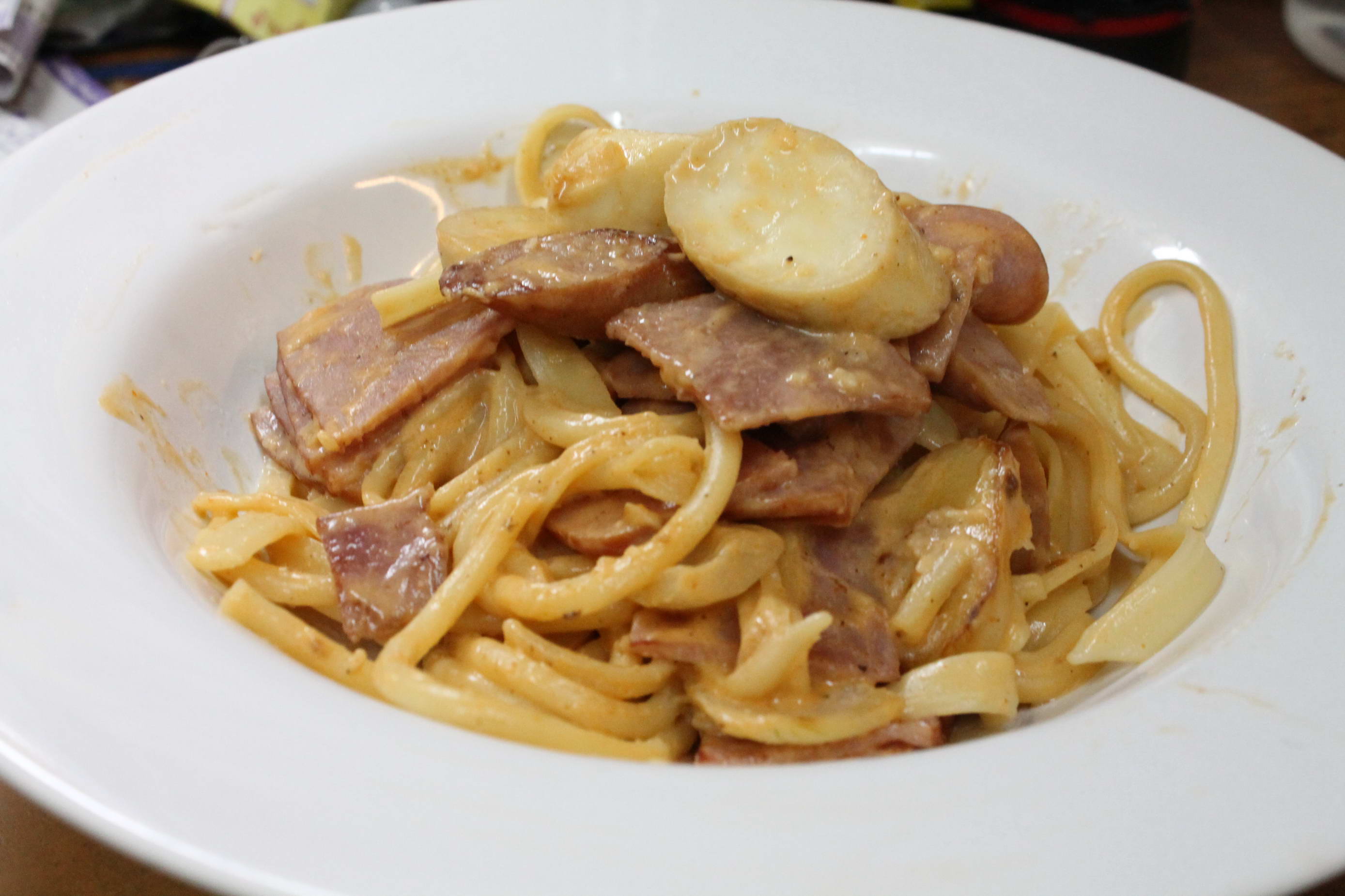 แบ่งปันครับ สองเมนู “สปาเก๊ตตี้ทะเล ปลาเค็ม กับมันกุ้ง” เมนูที่สอง “สปาเก๊ตตี้หมึก กับกุ้งกระเทียมเสียบไม้”