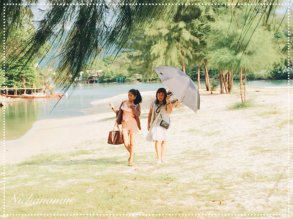 ถึงชายหาดส่วนตัวของรีสอร์ทแว้ววว ^^ ขุ่นแม่รักษาผิวค่ะ กางร่มตลอดเวลา อิอิ