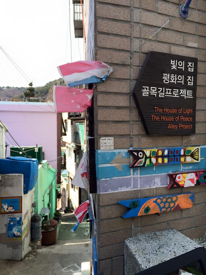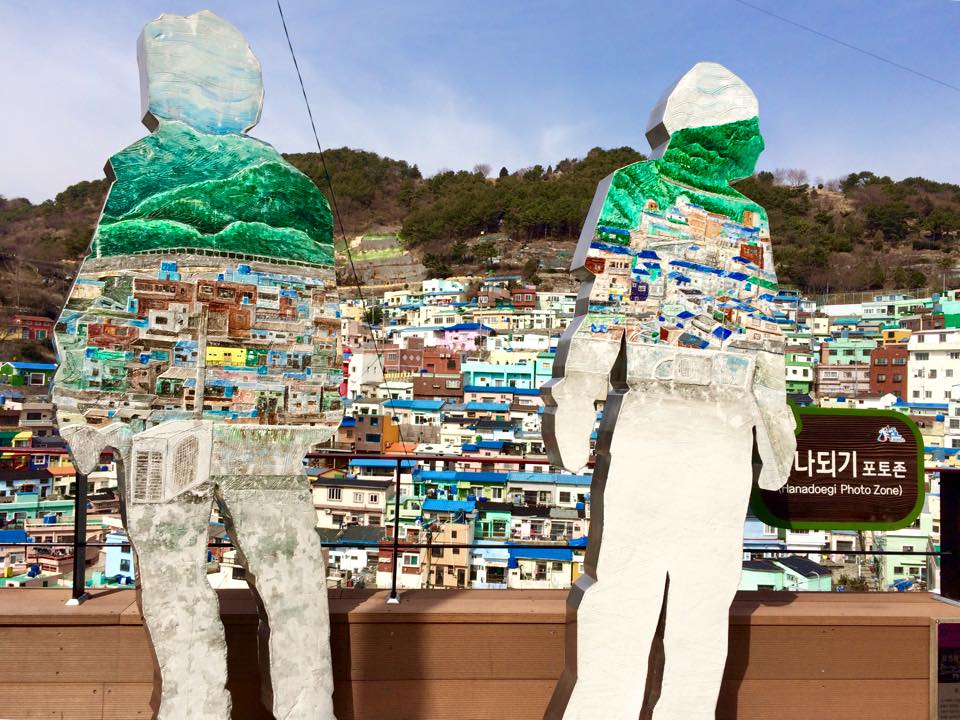 สถานที่แรกเลยแน่นอนที่สุดคือ หมู่บ้าน Gamcheon โดยนั่งรถไฟใต้ดินไปลงสถานี Toseong สายสีส้ม ออก Exit 6 เดินมาเจอสี่แยกเลี้ยวขวาไปเลยจะมองเห็น Busan Cancer Center ป้ายรถบัสอยู่ตรงนั้น เราต้องนั่งรถบัสสาย 2 หรือ 2-2 ค่ารถ 1000 KRW ใช้บัตรเหลือ 900 KRW ไปต่อ ซึ่งรถจะขับไปทางขึ้นเนินชันๆ สักไม่เกิน 15 นาทีจะถึงป้ายหน้าหมู่บ้านครับ เมื่อรถบัสจอดละให้เดินย้อนลงมาหน่อยนะครับหมู่บ้านอยู่ทางซ้ายมือซึ่งเดินเข้านิดนึงจะถึงจุดซื้อแผนที่ราคา 2000 KRW เพื่อไปสแตมป์รับโปสการ์ดสวยๆ ที่ระลึก 2 ใบ จากนั้นก้อเริ่มภารกิจกันได้เลย กว่าจะหาครบเล่นเอาเหนื่อยเลยครับเพราะป้ายบอกทางเป็นภาษาเกาหลีซะส่วนใหญ่ครับ หากมาช่วงหน้าร้อนคงเหงื่อแตกกันเลยทีเดียว