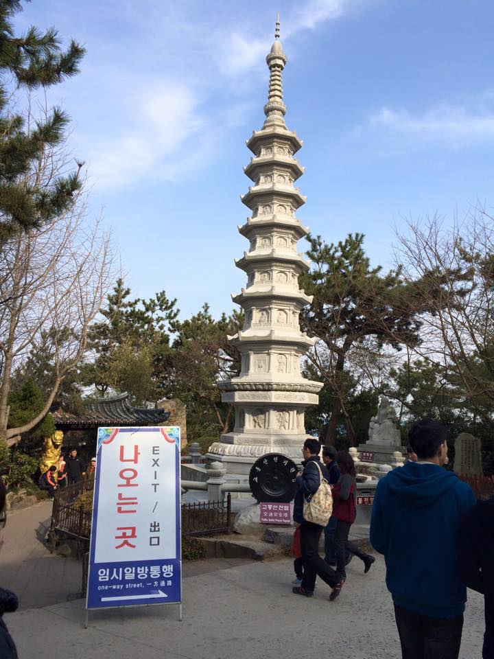 ผมนั่งรถบัสฝั่งตรงข้ามแล้วลงป้ายรถบัสอีกฝั่งของสถานีรถไฟที่เรามาเพื่อมานั่งรถไฟใต้ดินสีส้ม (1) ไปลงสถานี Seomyong และต่อสายสีเขียวเพื่อไปลงสถานี Hueundae Beach ออก Exit 7 ขึ้นมาลงเจอป้ายรถบัสเลย โดยจะนั่งรถสาย 181 ค่ารถ 1300 KRW ใช้บัตรเหลือ 1200 KRW ซึ่งประมาณ 1/2 ชม. รถจะมาคันนึง นั่งไปประมาณ 20 นาที ก่อนขึ้นแนะนำให้เอายาดมมารอเลยนะครับ คนขับนั้นขับได้มันส์มากครับ สังเกตเมื่อเจอสามแยกที่เห็นทะเลแล้วระยะทางจะเหลือ 2.1 km ขับไปอีก 4-5 นาที แล้วเตรียมดูฝั่งขวามือตามรูปแรกครับแล้วลงป้ายนี้ครับ จากนั้นเดินขึ้นทางชันอีกประมาณ 500 เมตรจะถึงทางเข้าวัดครับ
