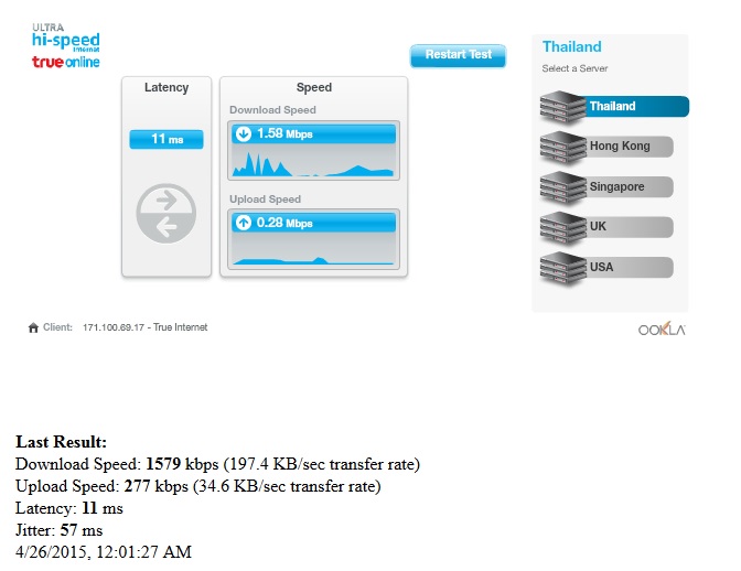 ผมซื้อซิมเน็ตเทพธอร์ของทรูมาใช้ ความเร็ว 15 mbps ปรากฏว่าอืดมาก ทั้งๆที่เคยลองทดสอบสัญญาณโดยใช้อีกซิม เติมเน็ตความเร็ว 12 mbps แล้วยังแรงกว่าของซิมรายปีอีก คือผมงงว่าเป็นเพราะอะไร ตอนซื้อโปรเน็ต 12 mb