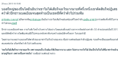 เวงเกอร์ ย้ำ..ไม่เคยเสียใจที่ปฏิเสธคว้าตัว อาซาร์ ทั้งที่มีโอกาสก่อนเชลซีมาก..!!