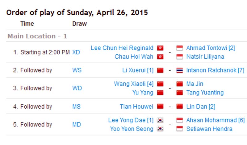 คลิปแบดมินตัน Yonex Chinese Taipei Open 2015 [18 - 19 ก.ค. 2558] : รอบรอง - รอบชิงชนะเลิศ
