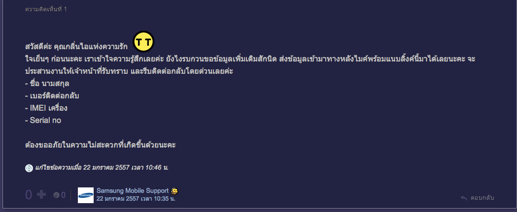 ทำให้รู้ว่าพนักงานที่เข้ามาตอบกระทู้ของ Samsung แค่จ้างมาเพื่อแก้ผ้าเอาหน้ารอดไปวันๆ เข้ามาตอบตามแพทเทิร์นที่ทาง Samsung วางเอาไว้ให้