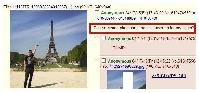 และขอให้ตัดต่อรูปให้หอไอเฟลอยู่ใต้นิ้วเขา