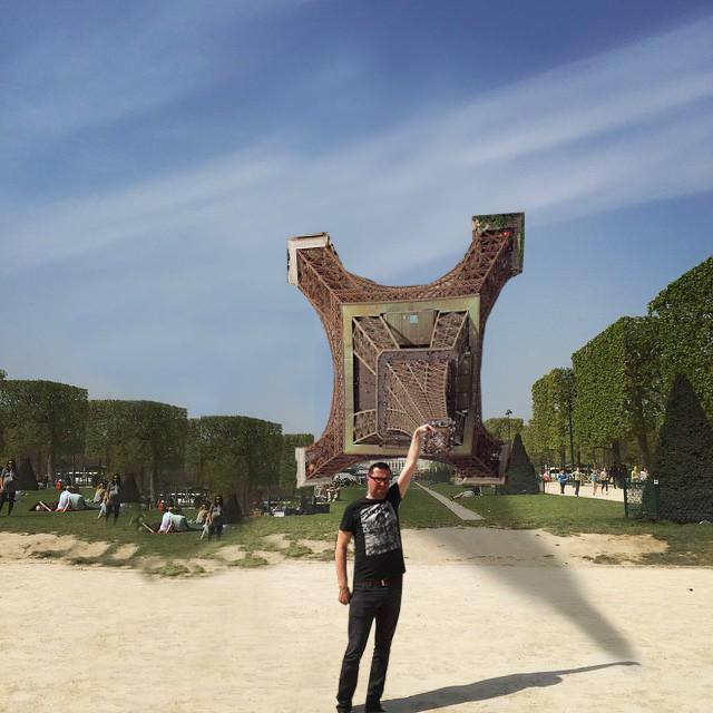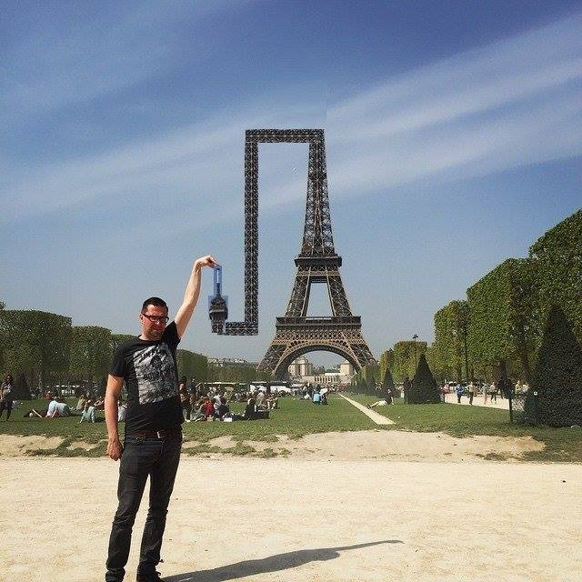 ชายคนนี้คงเคยเห็นภาพ หรือมีจินตนาการเกี่ยวกับผลลัพธ์ของภาพอยู่ในใจ ซึ่งเป็นภาพที่หลายคนชอบถ่ายคือ เอานิ้วแต่ที่ยอดหอไอเฟล