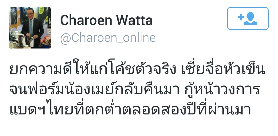 พอดีเห็นข้อความในทวิตเตอร์ ของคีย์แมนวงการแบดไทย และเป็นอดีตนายกสมาคมแบด อย่างท่าน เจริญ วรรธณสิน ทวิตไว้ว่า