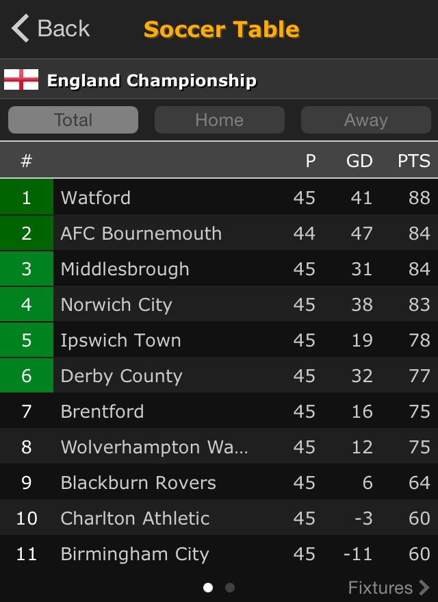 ส่วน play off มี middlebrough กับ norwich ที่เเน่ๆ ส่วน ipswich กับ derbyต้องการเสมอ