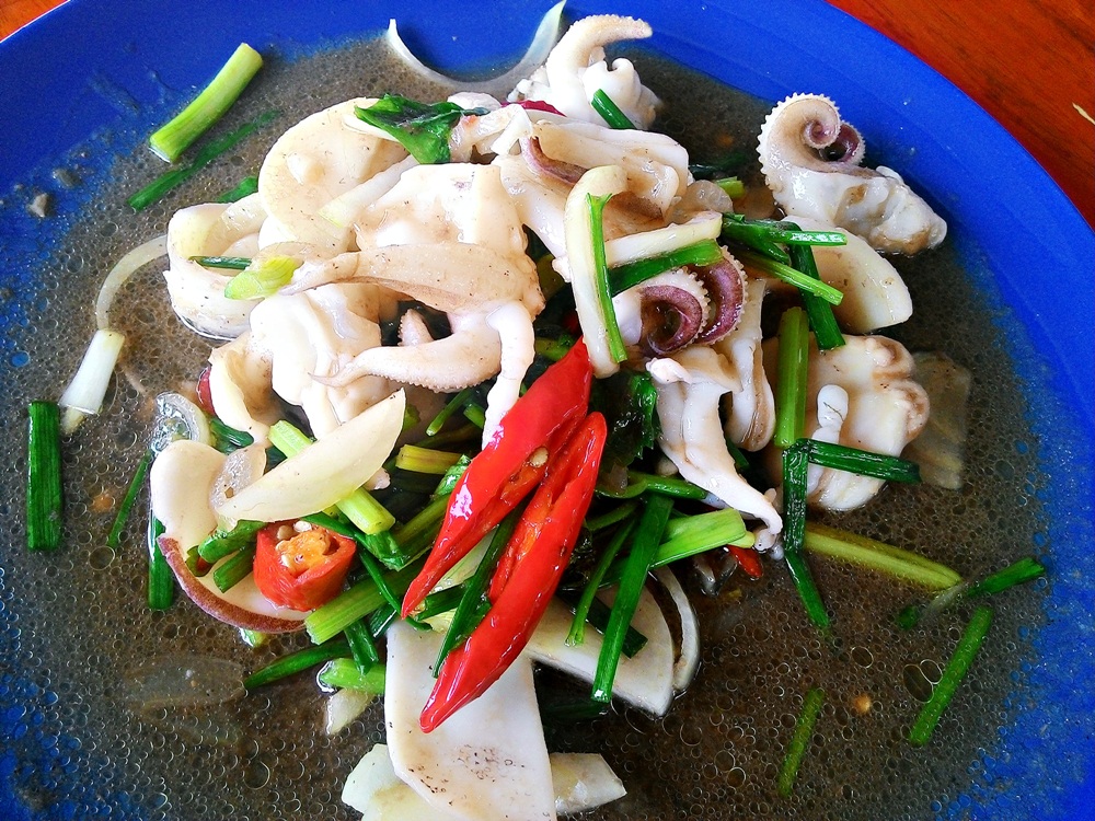 หมึกผัดกะปิ จานนี้จืดไปหน่อย แต่เนื้อหมึกสดดีค่ะ