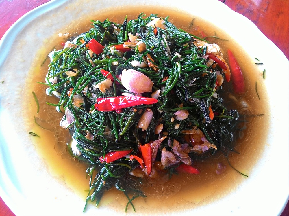 ผัดใบชะคราม ไม่มีในเมนู แต่คุณสามีสั่งไป คนรับออเดอร์บอกได้ๆ เดี๋ยวให้แม่ครัวจัดให้ เราว่าก็อร่อยดี