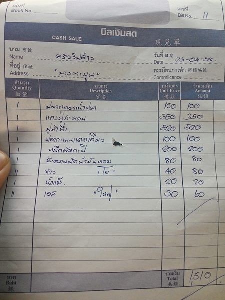 เช็คบิลมาราคาแต่ละอย่างไม่แพงเลยนะคะ จะไปหนักก็ตรงปูม้านึ่งนี่แหล่ะค่ะ
