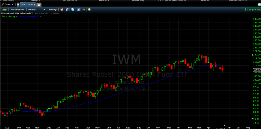 3.กราฟ IWM แม้ว่าจะปรับต่ำกว่าเส้นค่าเฉลี่ย 30 สัปดาห์ แต่ก็ยังไม่ใช่ขาลงซะทีเดียว ด้วยเหตุนี้ก็ต้องมาดูต่อไปจะเคลื่อนไหวยังไงต่อไป จะต้องรอดูว่ามันปรับอ่อนกว่าเส้นค่าเฉลี่ย 30 สัปดาห์จริงหรือเปล่า หรือว่าจะมีการปรับเพิ่มขึ้นอีกครั้ง ซึ่งเป็นความเคลื่อนไหวในช่วงระยะสั้นๆ จะให้เป็นภาวะกระทิงหรือหมีนั้น ก็ต้องมาตัดสินใจอีกที
