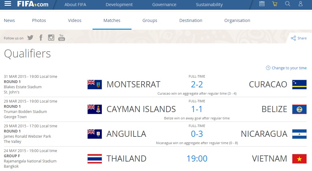 เว็บ FIFA และ AFC อัพเดตตารางคัดบอลโลกนัดไทย-เวียดนาม เป็น 24 พ.ค. แล้ว