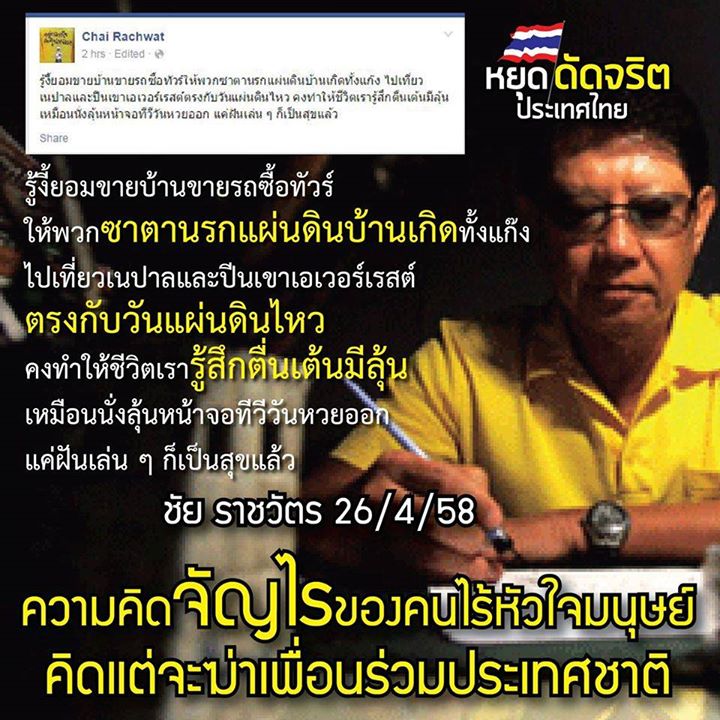 คุณเอา "ภัยพิบัติ" นั่นมาเปรียบเทียบ ในขณะที่ผู้ประสบภัยต้องพบกับความ "ทุกข์ยาก"