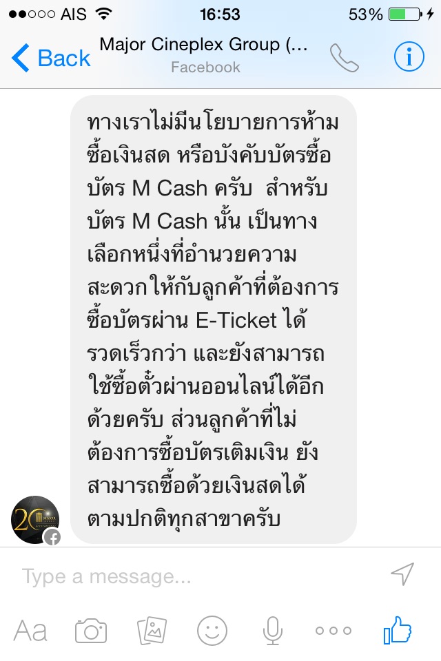 ทำไมโรงหนังเมเจอร์รังสิตถึงบังคับซื้อตั๋วด้วยบัตร M-Cash