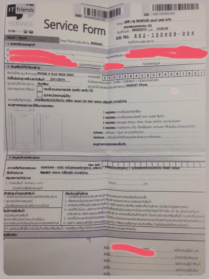 เมื่อวันที่ 7/4/58 เราได้ไปซื้อ iIpone6 Plus ที่ I Beat ห้างโลตัส นวนคร แต่ทางร้านแนะนำให้ซื้อเครื่องทรู เราก็ตกลง สรุปซื้อมาในราคา 32,400 บ. ตอนอยู่ที่ร้านเครื่องไม่มีปัญหา แต่พอมาใช้งานที่บ้านเครื่องเกิดมีปัญหา จอดับ เราก็เลยนำเครื่องกลับไปที่