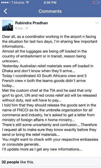 และสิ่งของอาจจะถูกกักไว้ที่ศุลกากรเนปาล หากไม่มีผู้รับผิดชอบในการจ่ายภาษี