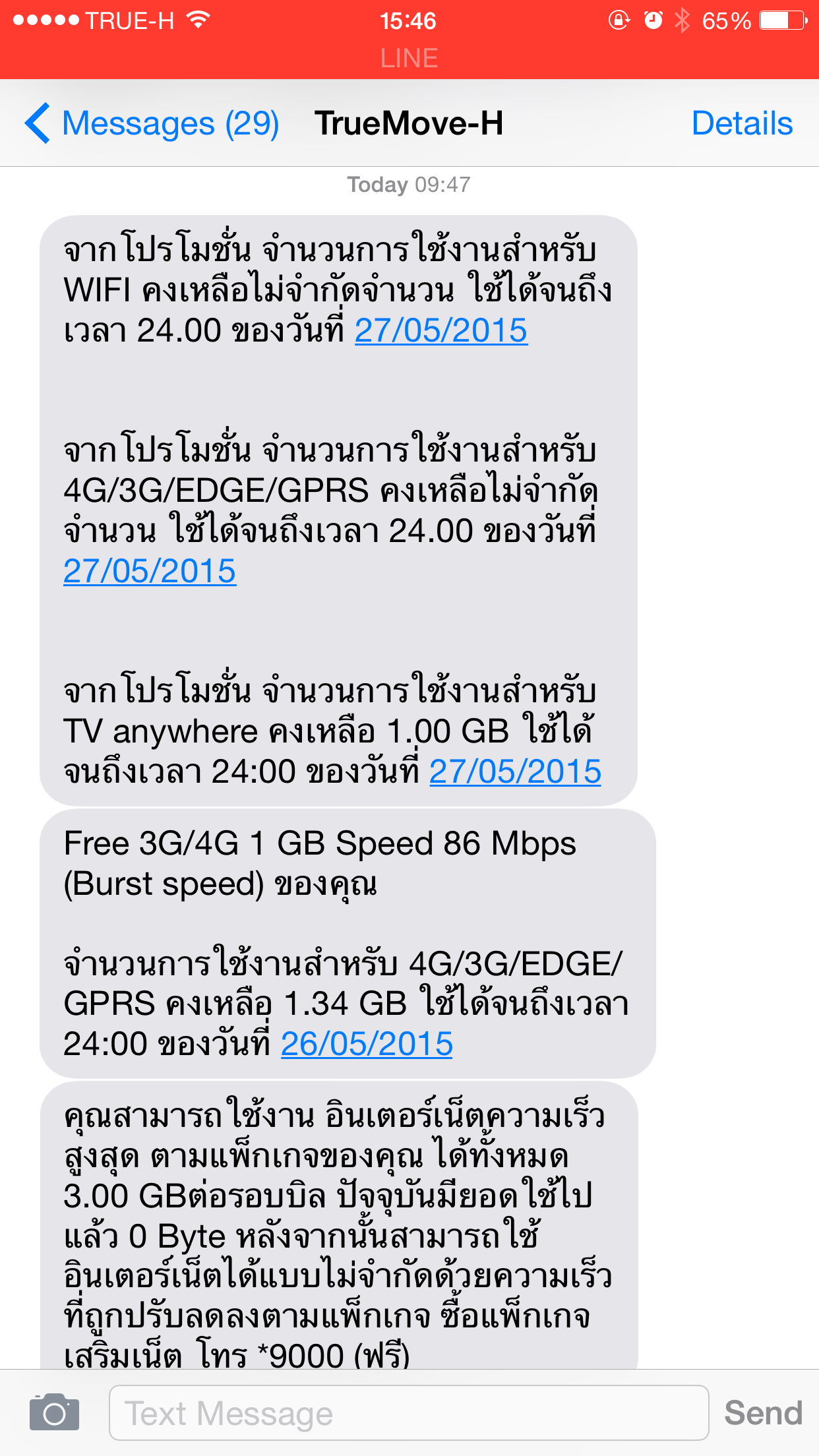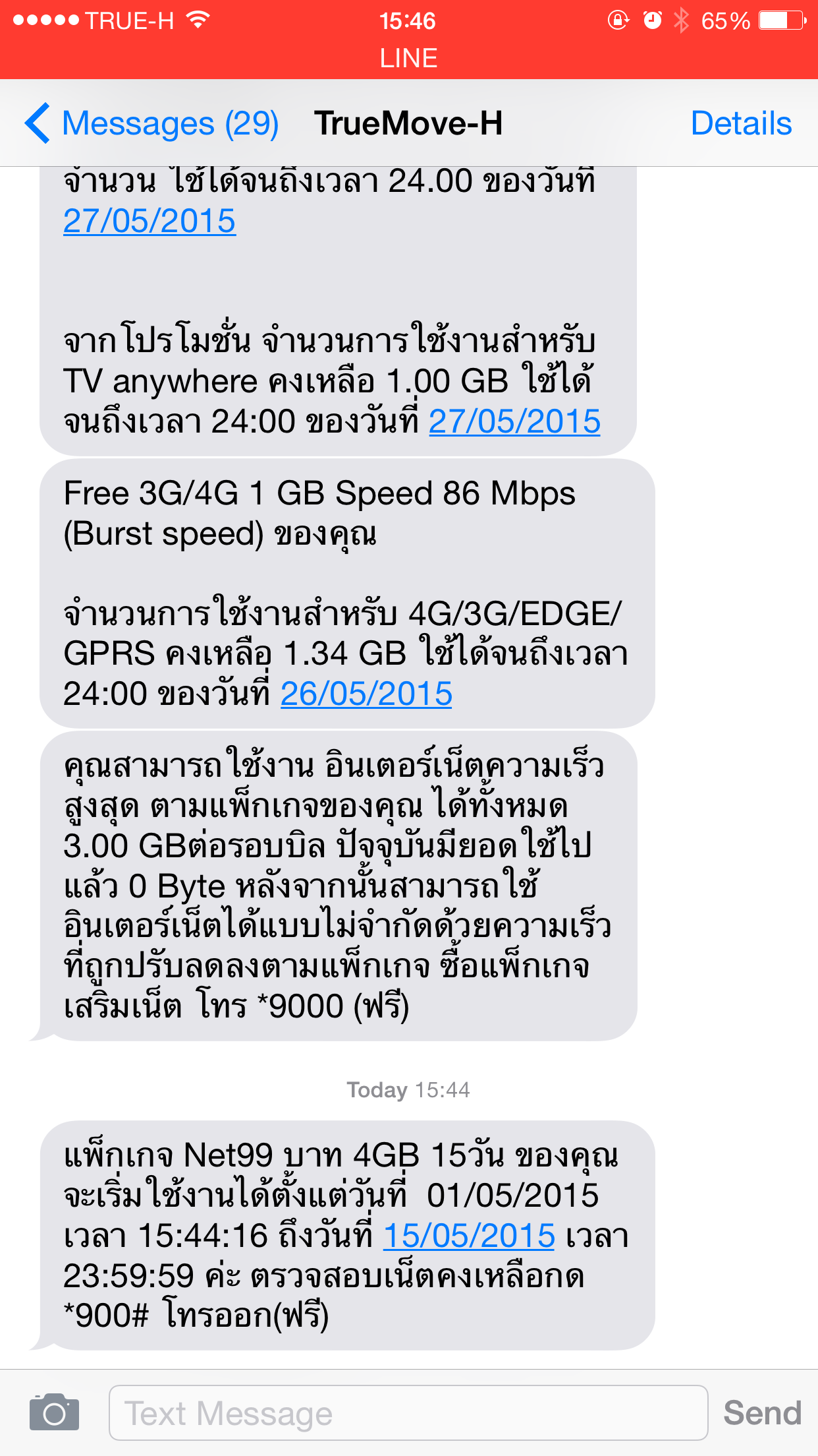 ได้รับsms โปรโมชั่น 4G+SuperSmart399 โทร150 เน็ต3GB ของคุณ จะสิ้นสุด 01/05/2017 และโปรโมชั่นใหม่คือ 4G+SuperSmart399 โทร150เน็ต1GB เริ่ม 02/05/2017 ขออภัยสำหรับข้อความนี้หากคุณไม่ได้ใช้โปรโมชั่น 4G+Su