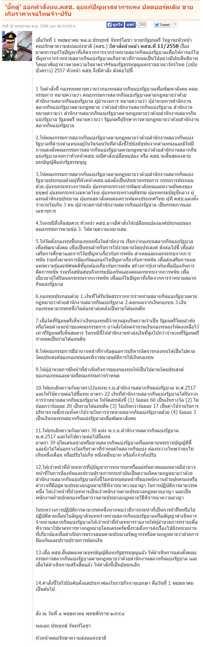 ...′บิ๊กตู่′ ออกคำสั่งหน.คสช. ลุยแก้ปัญหาสลากฯแพง ปลดบอร์ดเดิม ขายเกินราคาเจอโทษจำ-ปรับ !...