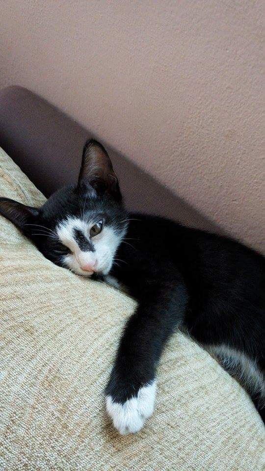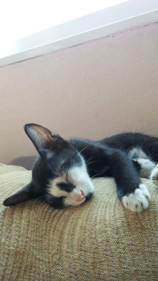 เช้านี้ตื่นมายังร้องแหกปากลั่นอยู่เหมือนเดิม สงสารมาก แต่ไม่รู้จะทำไง .. ตอนนี้น้องสงบลงแล้ว พามาหาพี่บ้านที่เลี้ยงแมว ไม่ร้องแบบเดิมแล้ว และเริ่มมีกัดมือกับกระโดดโลดเต้นแล้ว (แต่พี่เขาก็เลี้ยงเพิ่มไม่ได้แล้ว T-T)