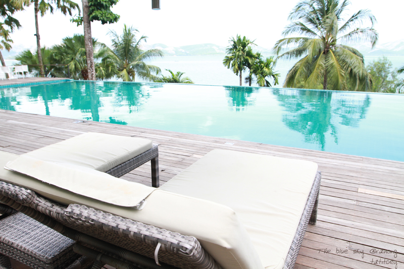 สระว่ายน้ำ เห็นวิวทะเล เห็นเกาะฝั่งตรงข้าม บรรยากาศดีสุดๆ