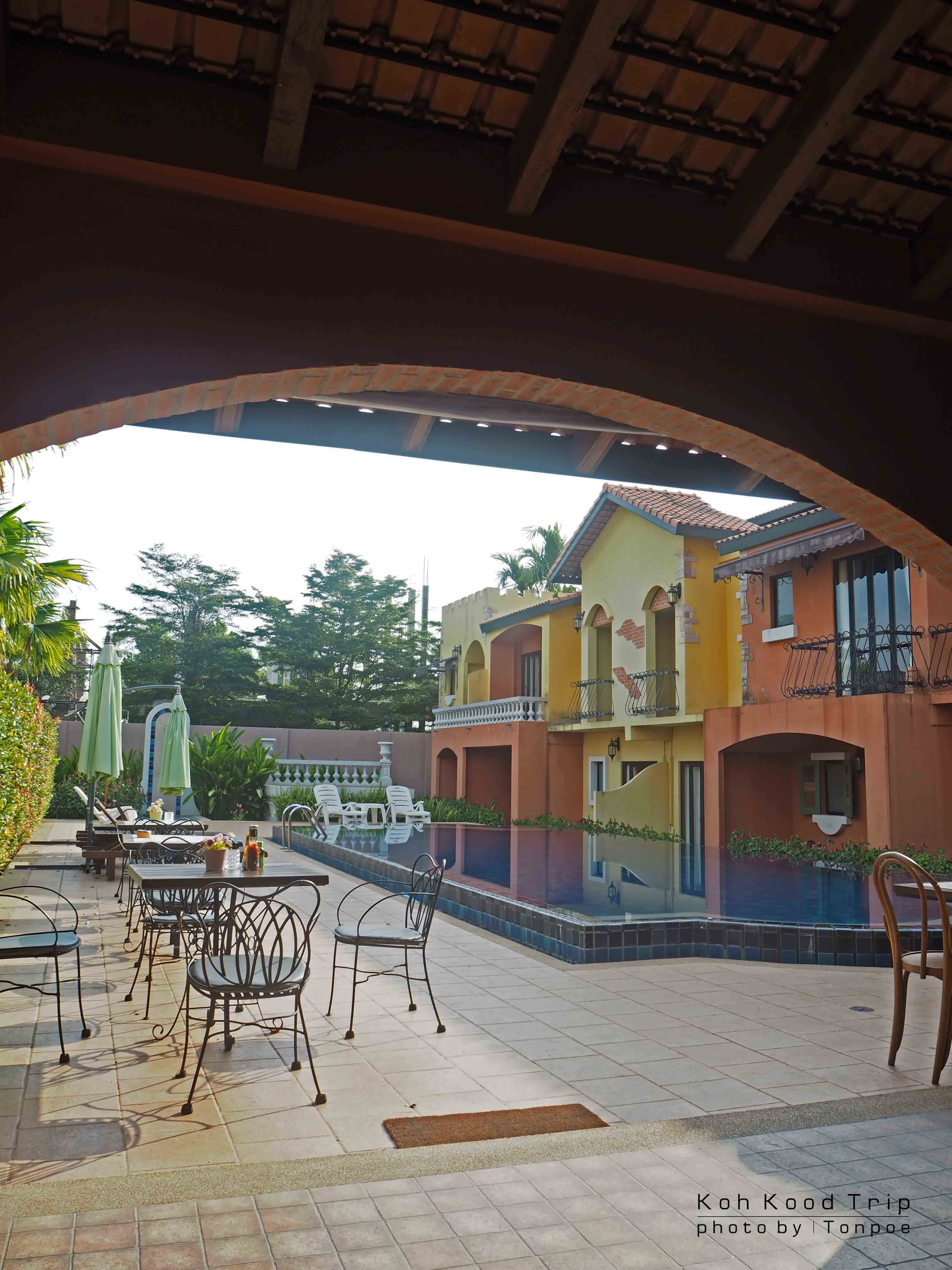 อีกมุมครับ มองย้อนกลับจากท้ายสระ มาเห็นส่วนห้องอาหาร โดยรวมแล้ว ผมคิดว่าโรงแรมนี้ก็น่าพักอยู่นะครับหากจะมาค้างคืนก่อนไปเกาะกูดครับ