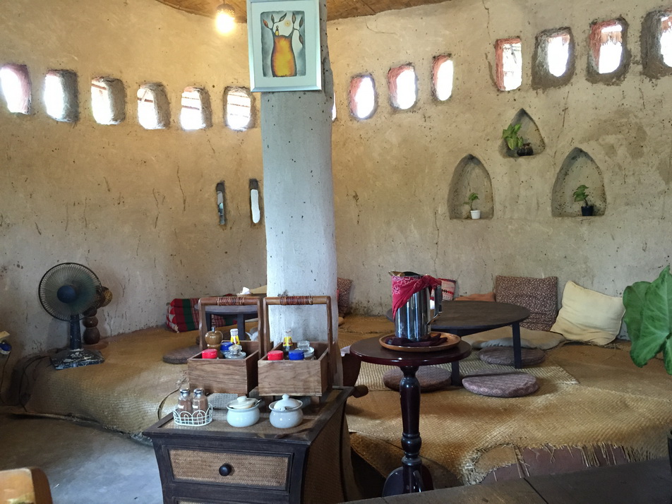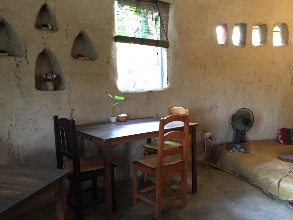 ร้านเป็นบ้านดินค่ะ ข้างในเย็นไม่ร้อนถึงแม้จะไม่มีแอร์ เรามากินช่วงกลางวันเดือนเมษา ยังไม่ร้อนเลย