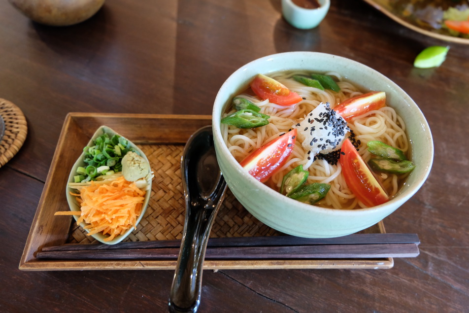 ต่อมาจานหลักเป็นหมี่เย็นจานนี้ เป็นหมี่เย็นใส่กระเจี๊ยบเขียวแบบญี่ปุ่น น้ำซุปรสดีมาก แนะนำสั่งจานนี้ค่ะ ชอบมาก