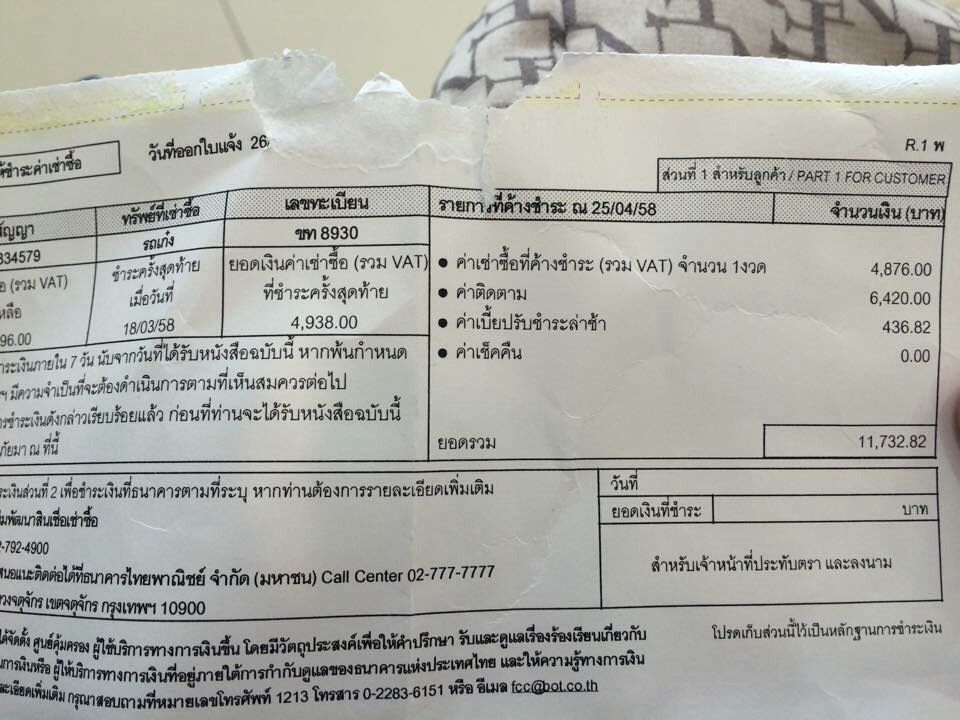 ลืมจ่ายค่างวดรถไปงวดเดียวโดนค่าติดตามไป 6,420฿ ใครเคยโดนบ้างครับ