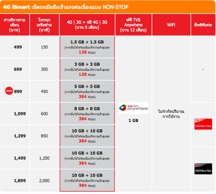 ที่สนใจอยู่ตอนนี้ก็มี True ที่เป็นแพคเกจ 4G non stop ตัวใหม่