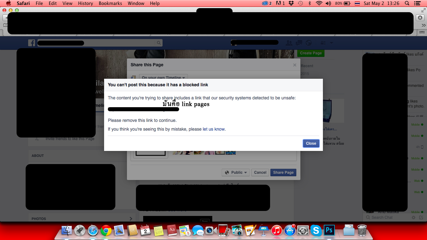 เพจเฟสบุ๊คแชร์ไม่ได้ ใส่linkเพจก็ไม่ได้ มีวิธีแก้มั้ยครับ
