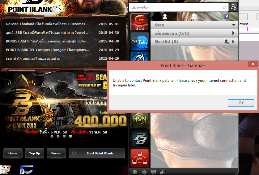 unable to contact Point Blank patcher. please check your internet connection
