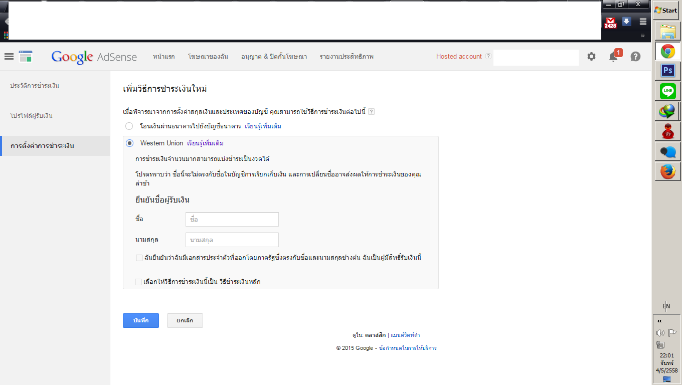 สอบถามการดึงเงินจาก Google เข้า WU ( westurn union )