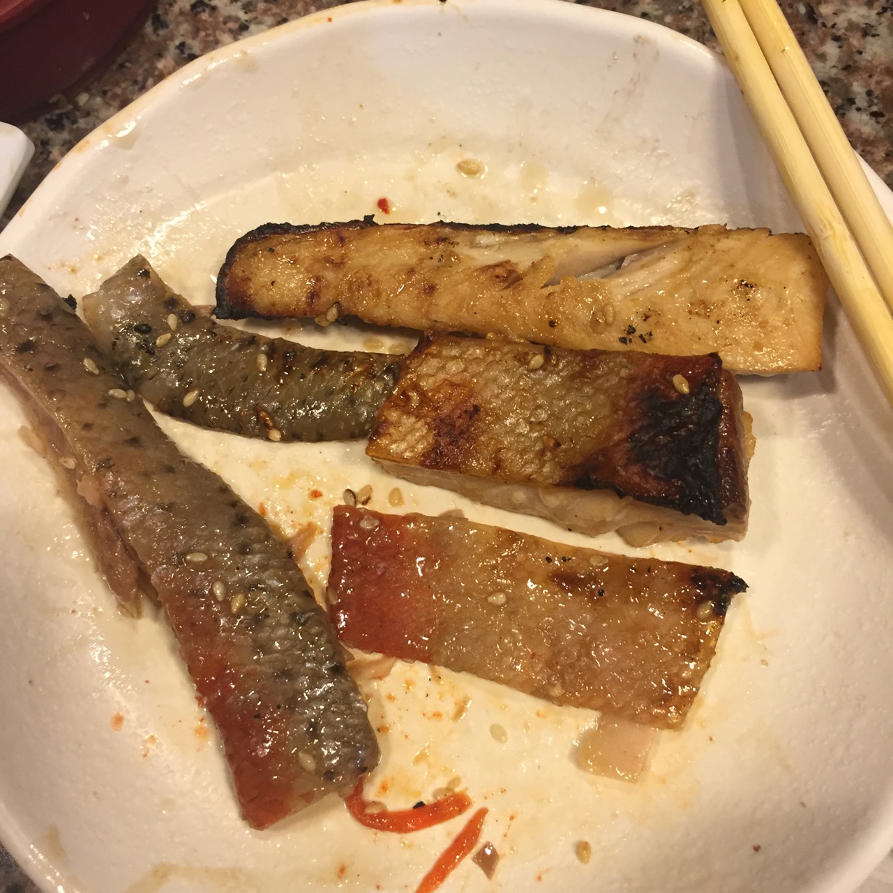 เวลาจ่ายตลาดเข้าบ้าน มักจะซื้อปลามาเก็บไว้ในตู้เย็น คิดอะไรไม่ออกก็แกะออกมาใส่เตาย่างปลา เป็นอันเสร็จวันนี้เอามารวมไว้ ปลาฮอกเกะ ปลาคินเมะได ปลาซาบะ ปลาแซลมอน ほっけみりん (Hokke Mirin) ปลาฮอกเกะ แหล่งจับให